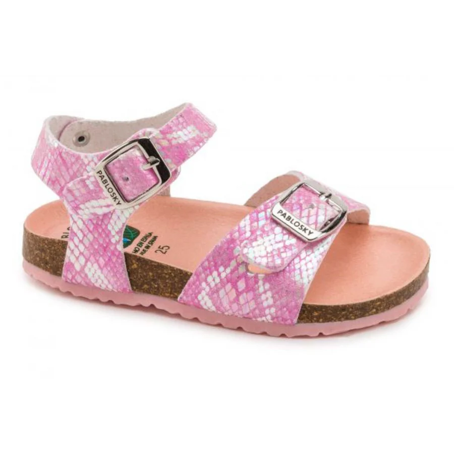 These cute girls sandals from Pablosky come with a subtle print along with adjustable buckles for a secure fit. The highly flexible and absorbent insole provides comfort while the rubber sole gives grip. Perfect for summer days. Uppers: Manmade. Lining: Textile. Sole: Manmade.