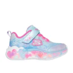 Sporty style gets lit-up and lovable with Skechers S-Lights®: Eternal Heart Lights. This lighted design features a sparkle mesh and synthetic glitter upper with stretch-laced front, and a Skechers adaptive closure.