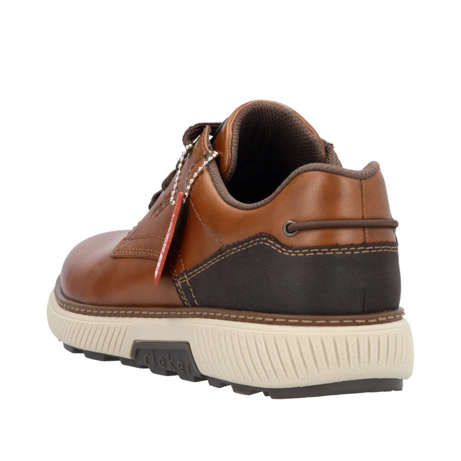 Embrace unbeatable comfort and effortless style with these smooth leather wood brown Rieker lace-up shoes. Adhering to a professional and objective tone, these shoes are designed with a light and grippy sole for superior traction, guaranteed support and a perfect fit through lacing, and a padded and removable insole for added convenience. These lace-up shoes, cut in extra wide H, embody the perfect balance of fashion and comfort.