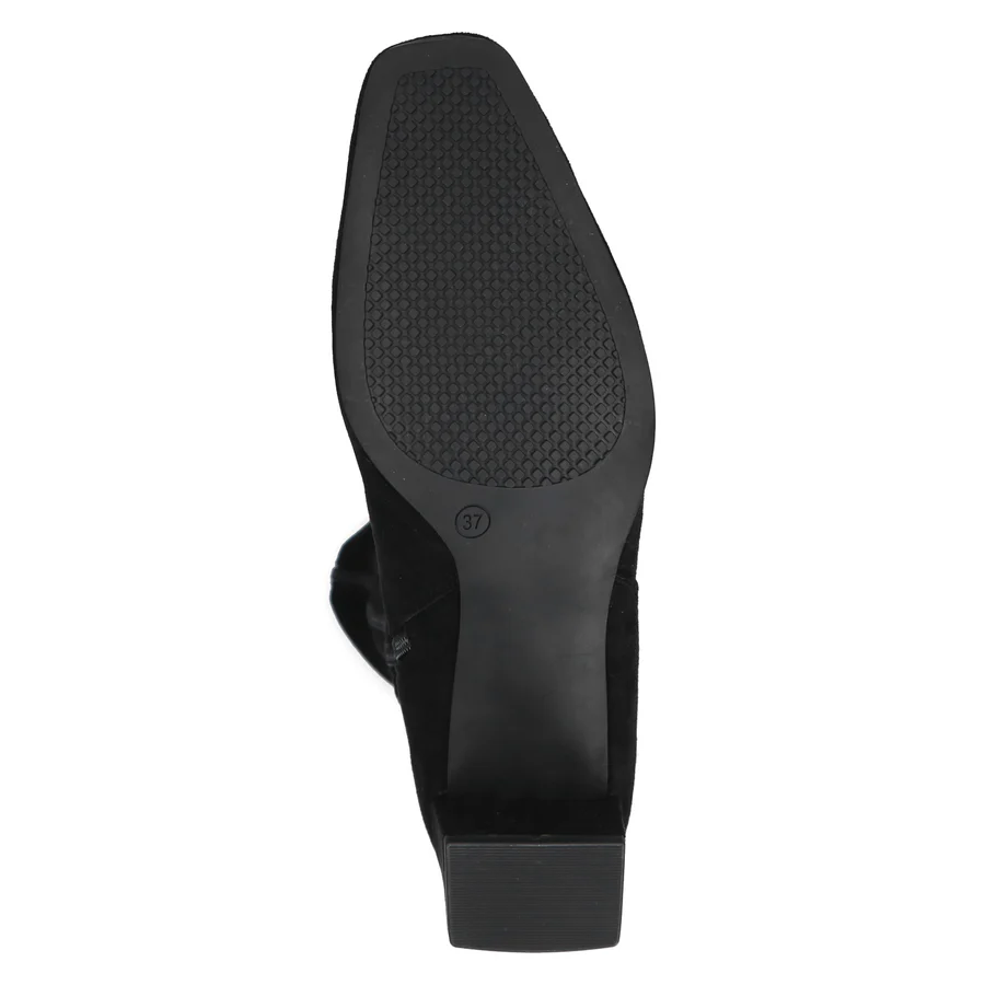 Introducing the alluring 9-25547 by Caprice, an exquisite women’s tall boot crafted with a soft, plush textile suede upper for a sophisticated and refined appearance. Enhanced with advanced Memotion technology, the memory foam insole ergonomically conforms to your foot’s contours, providing unparalleled comfort and support. Even while walking, the cushioning feature effectively absorbs hard impacts, ensuring a pleasurable experience. With a convenient side zipper and a 58mm covered block heel, this chic boot exudes elegance and adds height to your outfit. A must-have for the autumn-winter season, this fashionable boot is a must-have addition to any stylish collection.