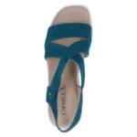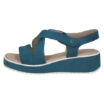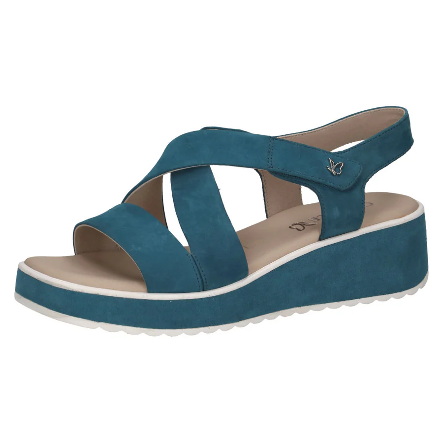 Experience the comfort and style of the ladies blue wedge sandal from Caprice – a must-have addition to your shoe collection!