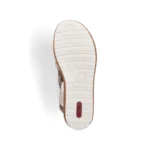 Indulge in a comfortable and stylish experience with these Rieker 62741-60 Ladies Sandals in beige. The stitchdown construction guarantees durability and flexibility, while the elastic band allows for easy wear and removal. The shock-absorbing and lightweight sole, along with the wedge heel, provides a pleasant walking sensation even after extended wear. Plus, the extra soft cover sole and extra width H in the forefoot area offer your feet ultimate comfort. Experience fashionable wellness with Rieker!