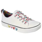 Internationally renowned muralist James Goldcrown brings his iconic #Lovewall heart designs to Skechers in this inspiring collaboration. Art and love makes the perfect pair in the Skechers x JGoldcrown: BOBS® from Skechers B Wild – Love Only shoe. This sneaker features the artist’s signature design on the laces and midsole with a lace-up canvas upper and cushioned Memory Foam insole.